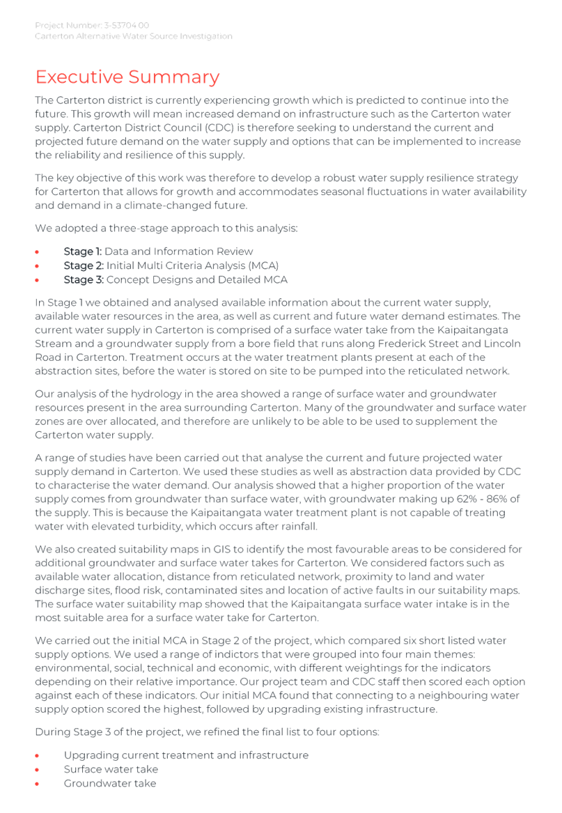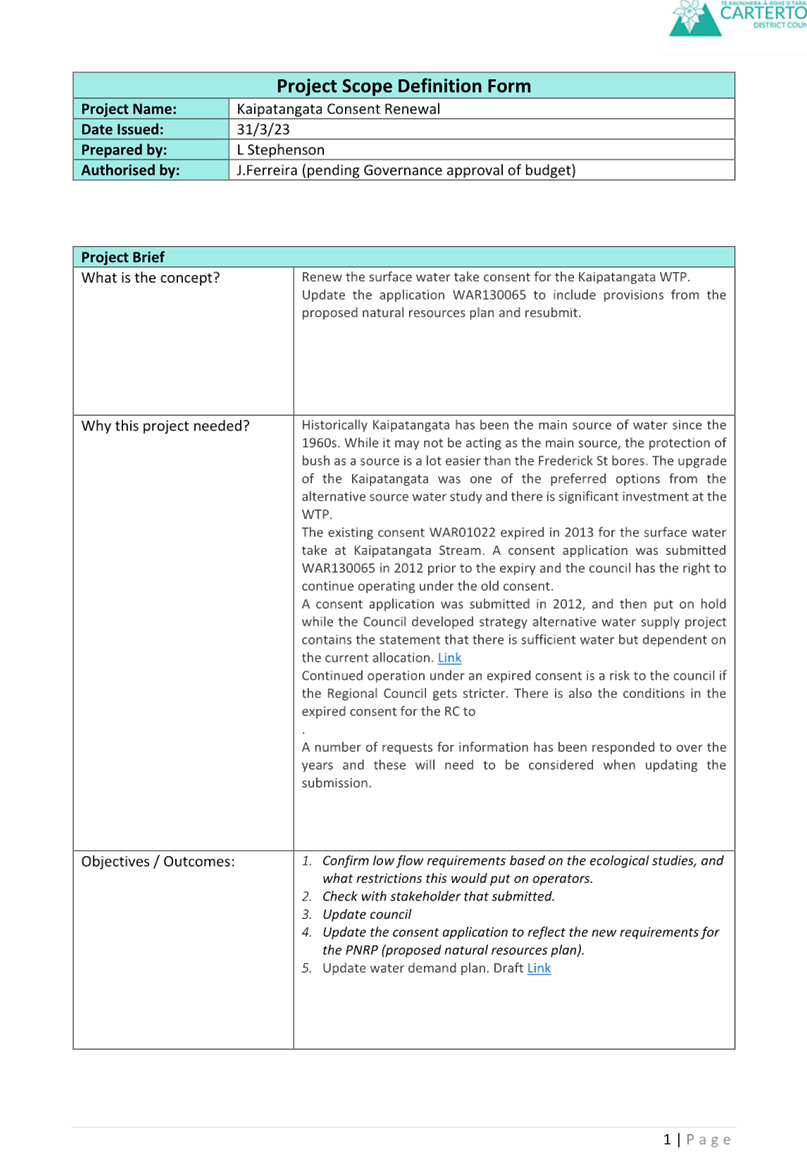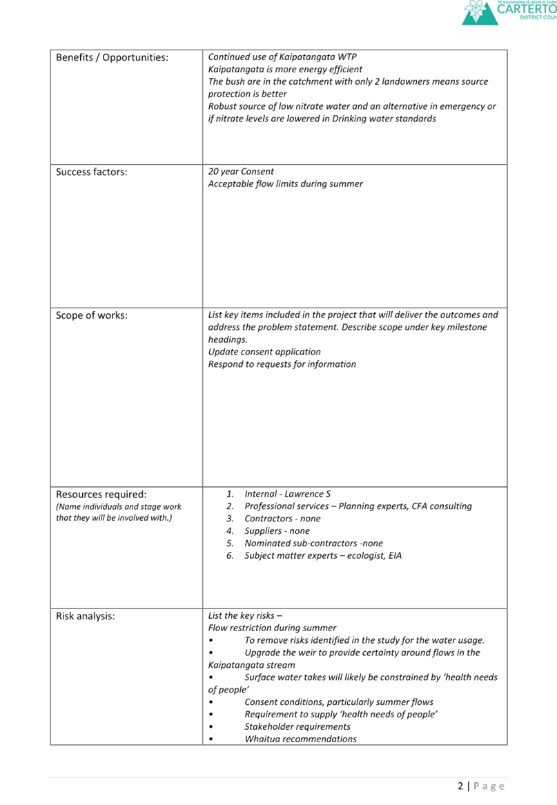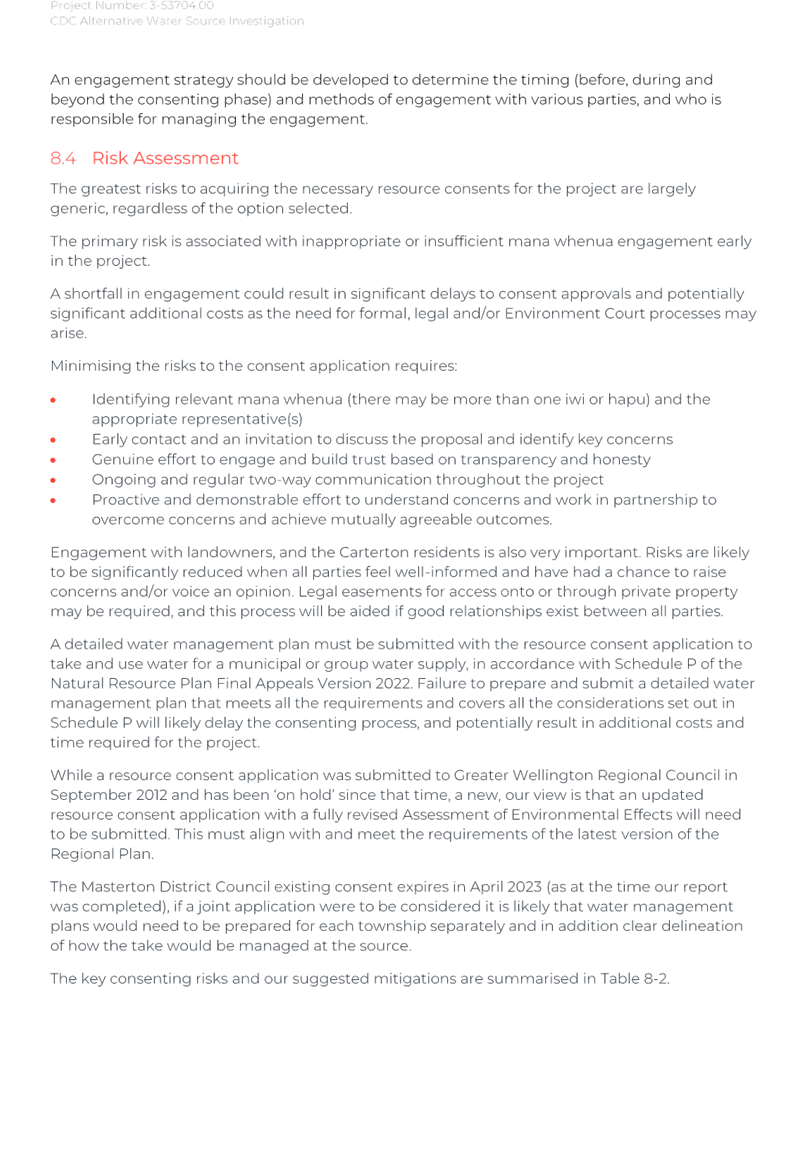 Carterton District Council’s risk management framework (RMF: MagiQ 39355) has been incorporated into the planning and decision-making process for the renewals programme.