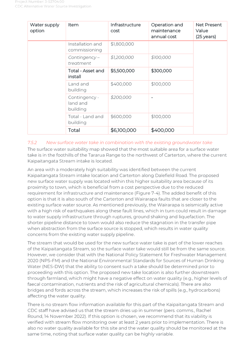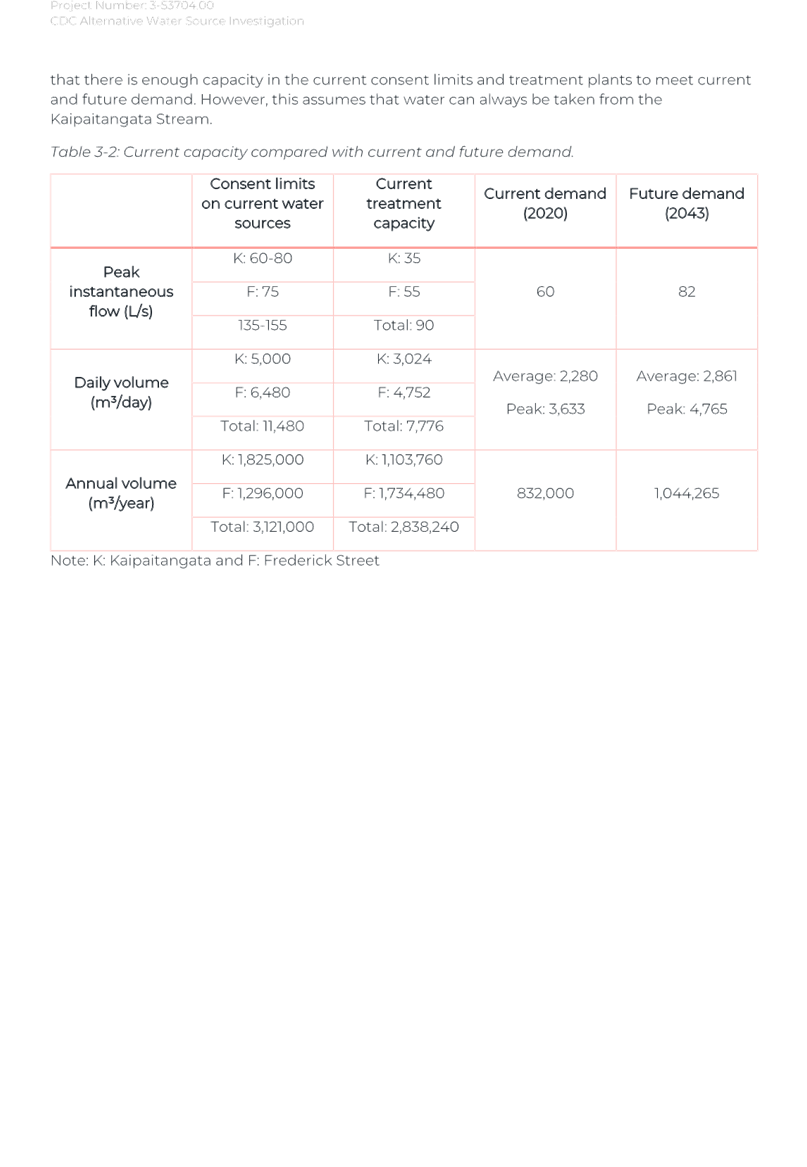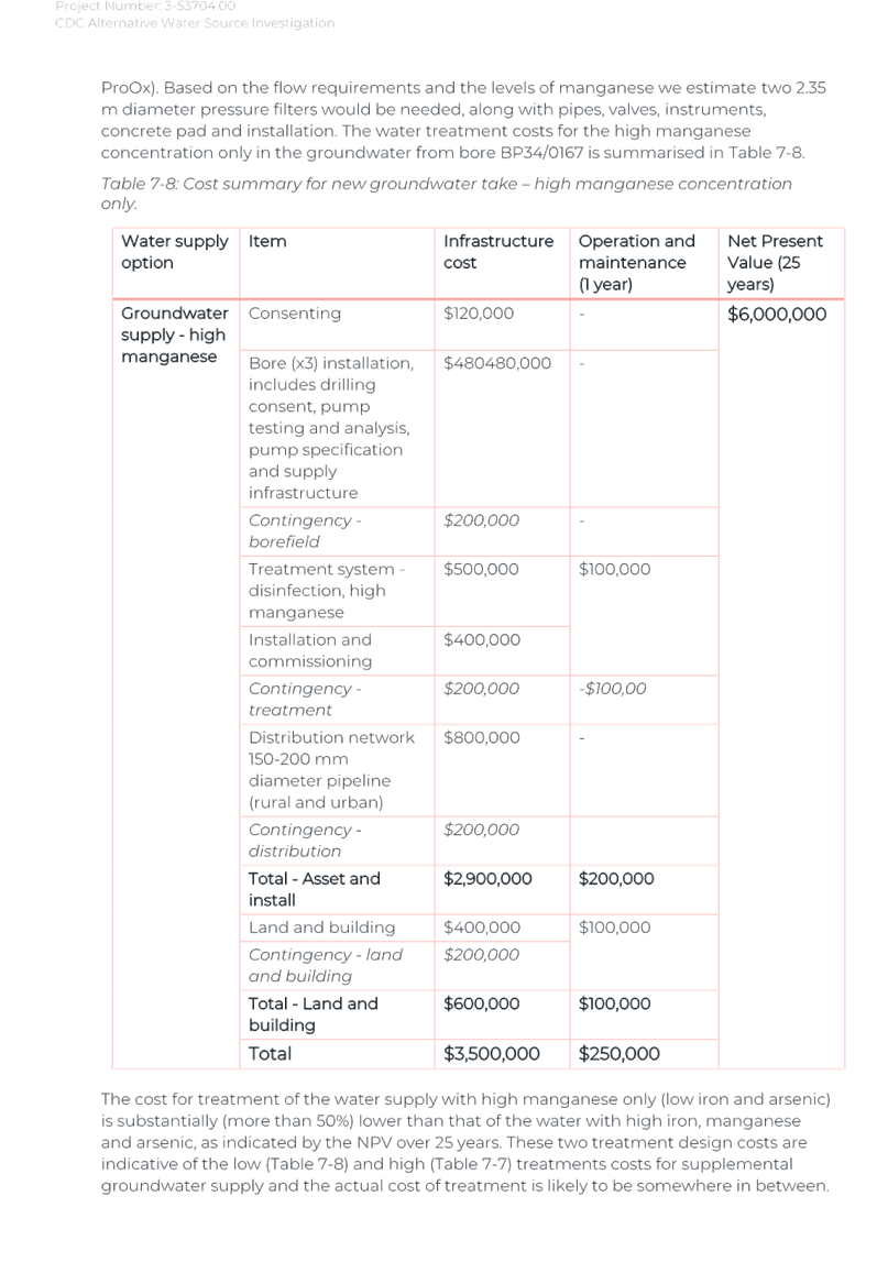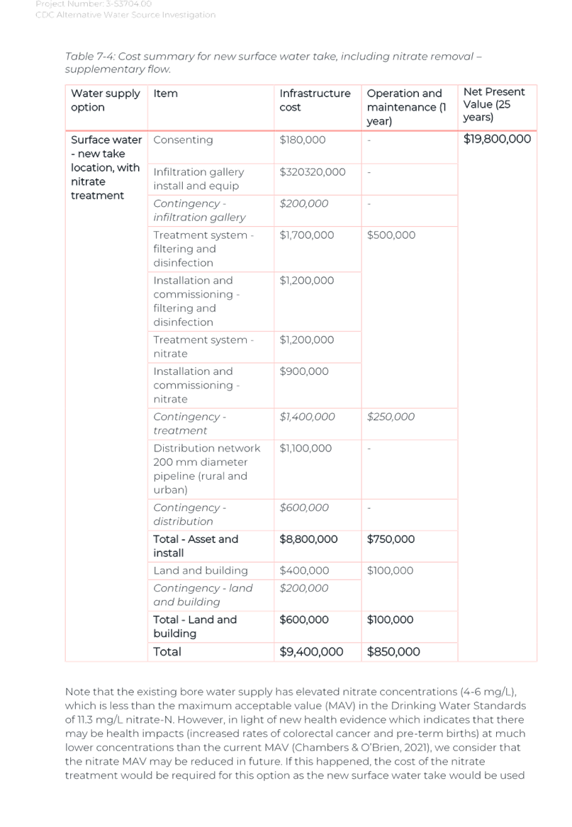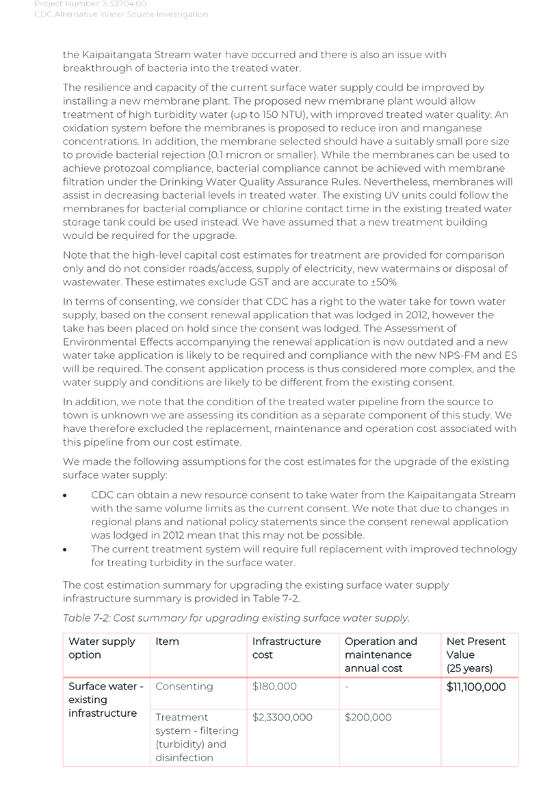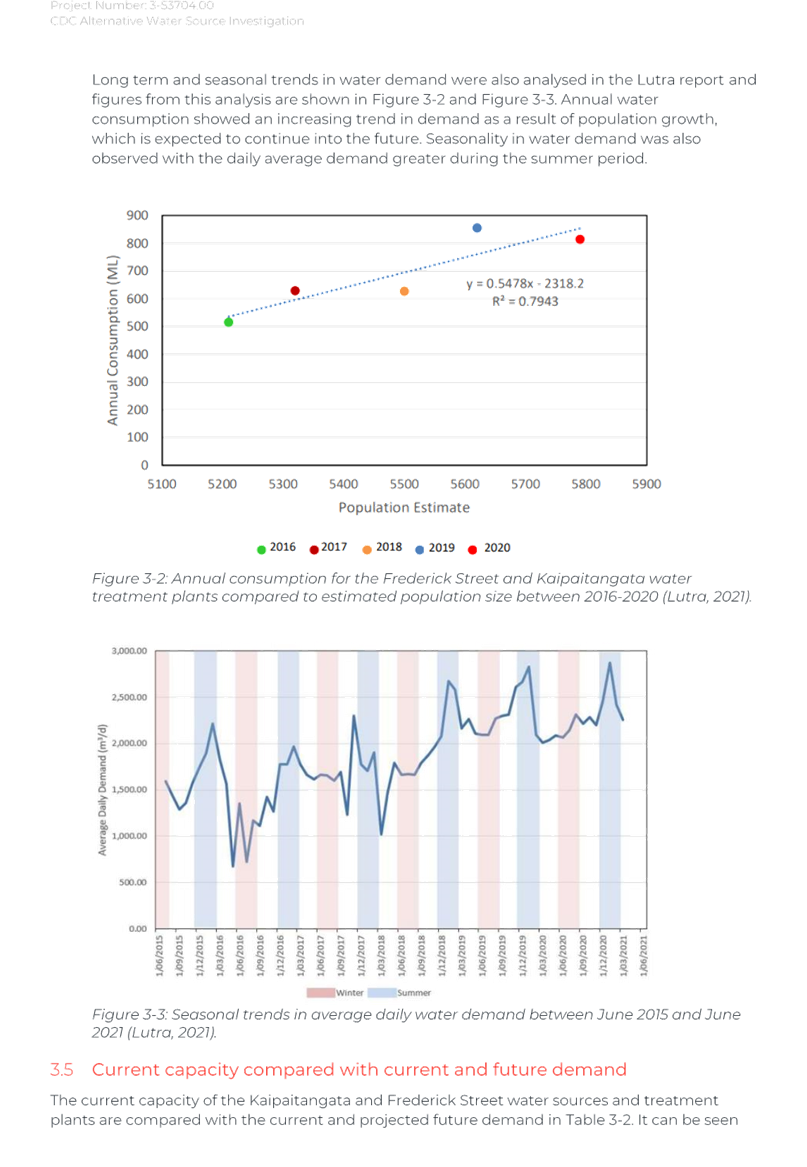 Again, due to the wet weather, we have been running off the Frederick St Supply more than we would normally be at this time of year. The operation of the Kaipaitatanga plant has been very intermittent, which has affected the completion date for the upgrade.