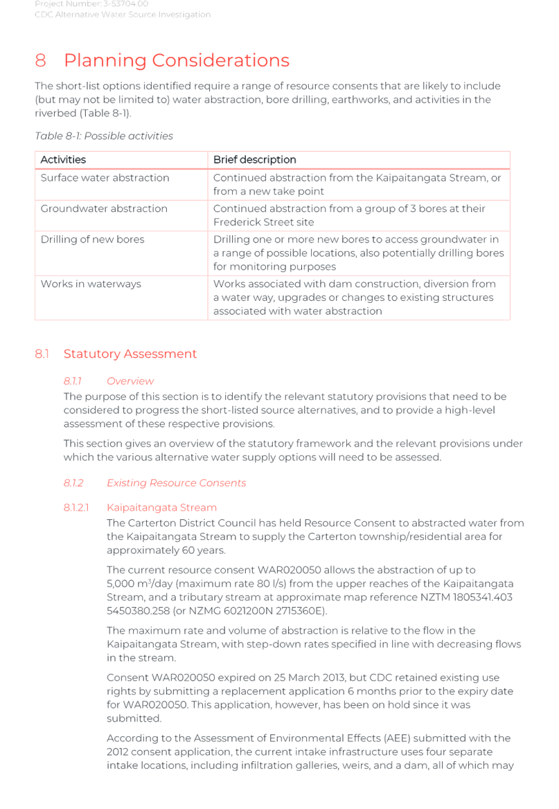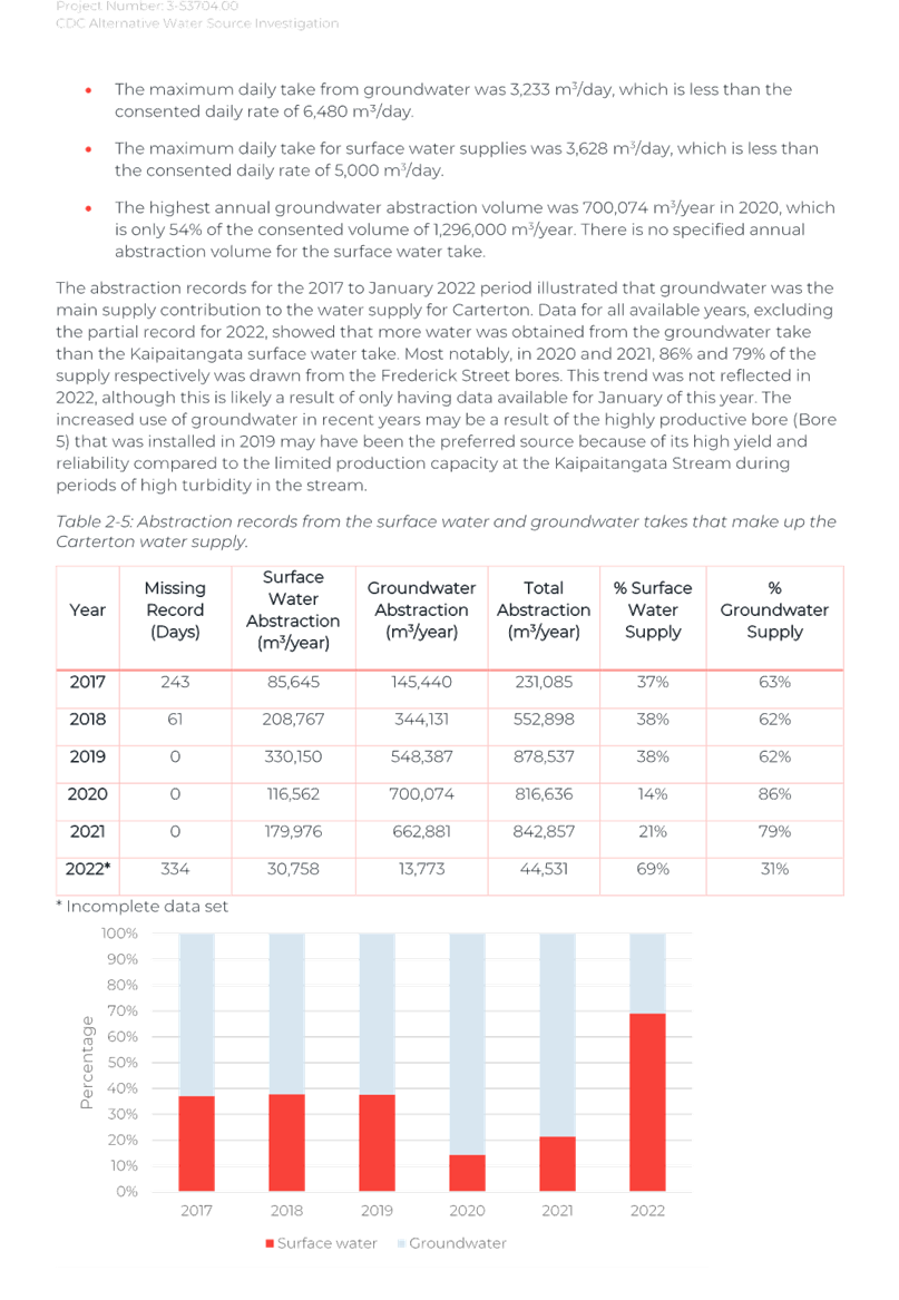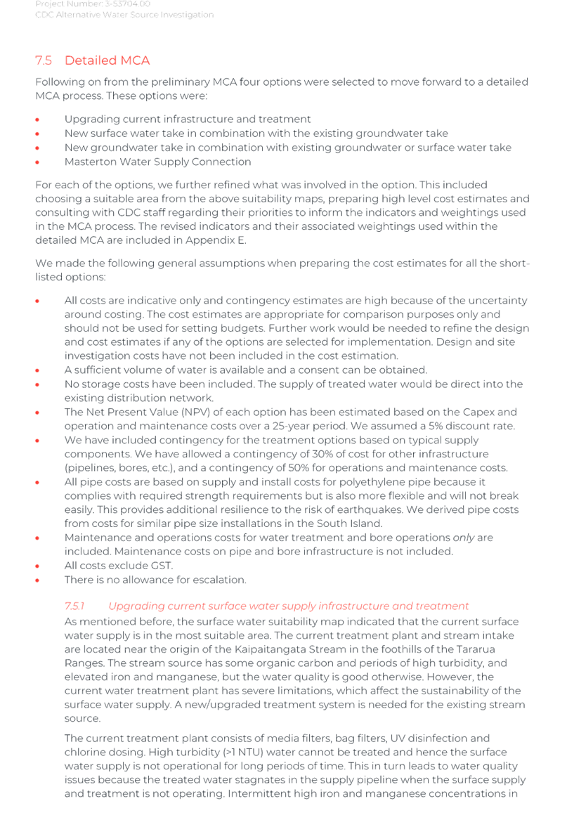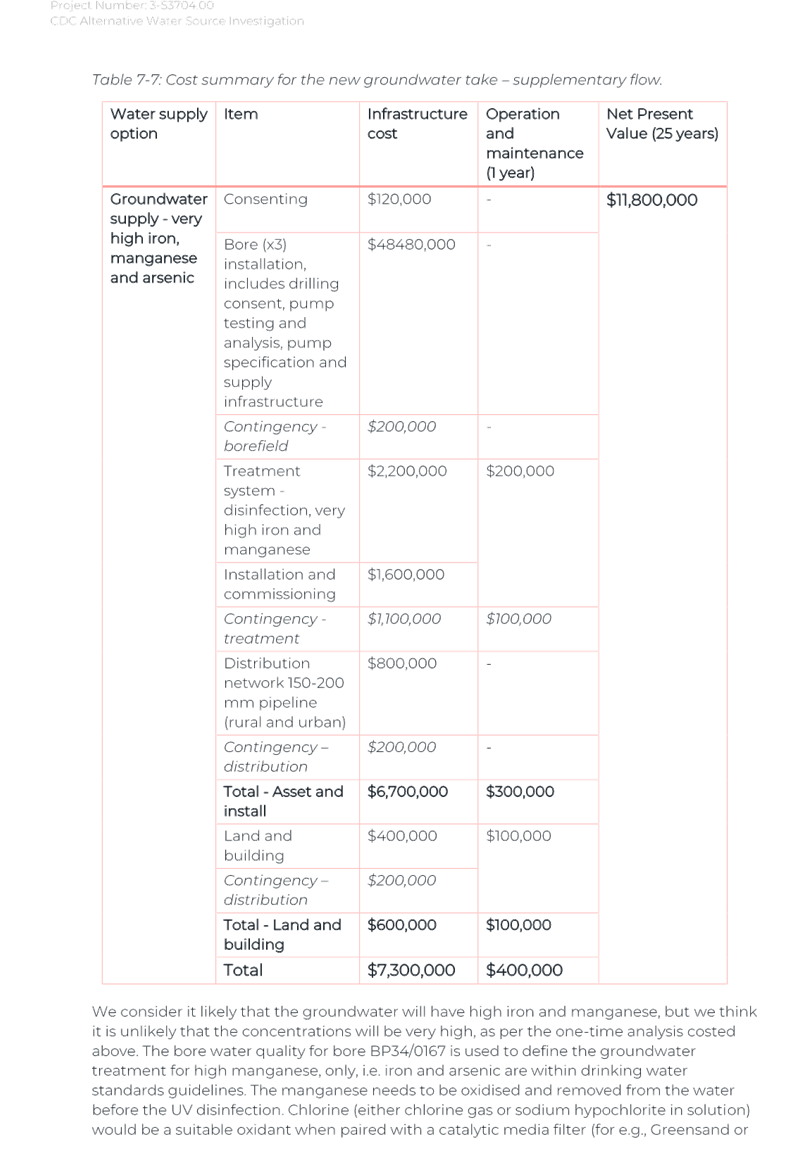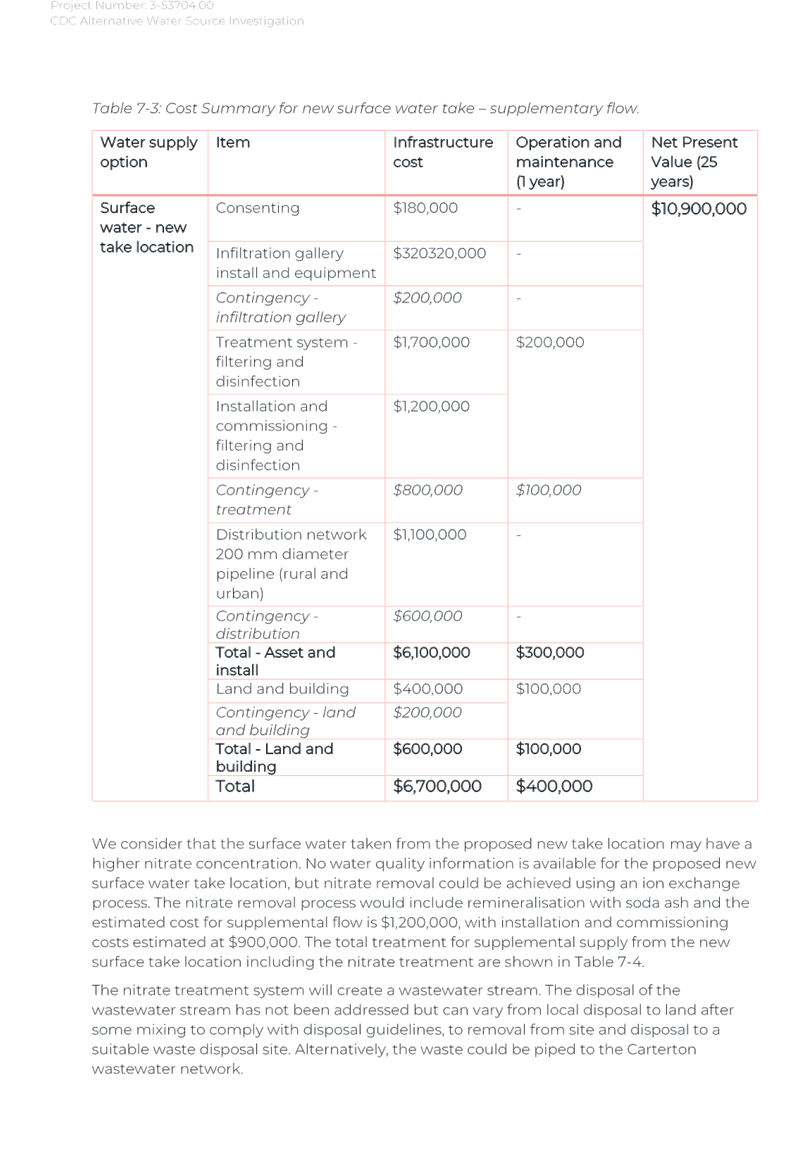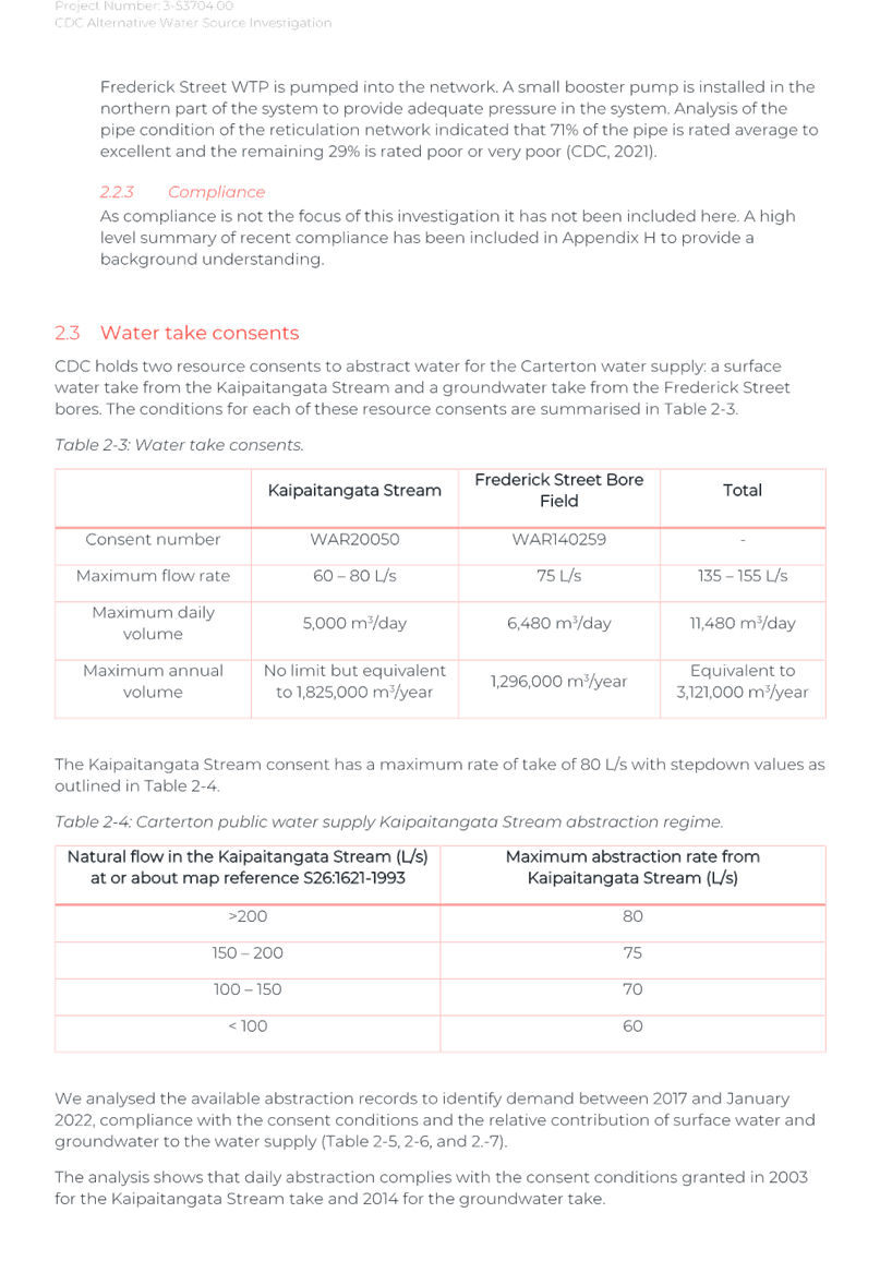 Again, due to the wet weather, we have been running off the Frederick St Supply more than we would normally be at this time of year. The operation of the Kaipaitatanga plant has been very intermittent, which has affected the completion date for the upgrade.
