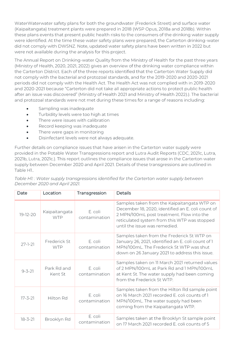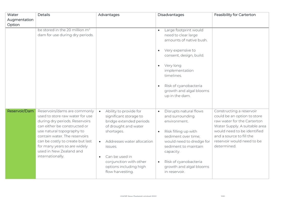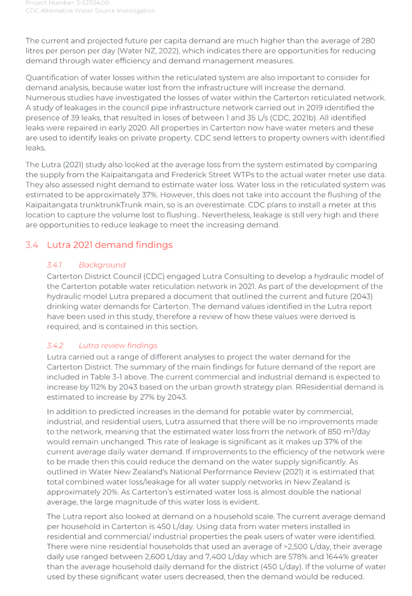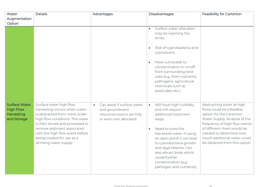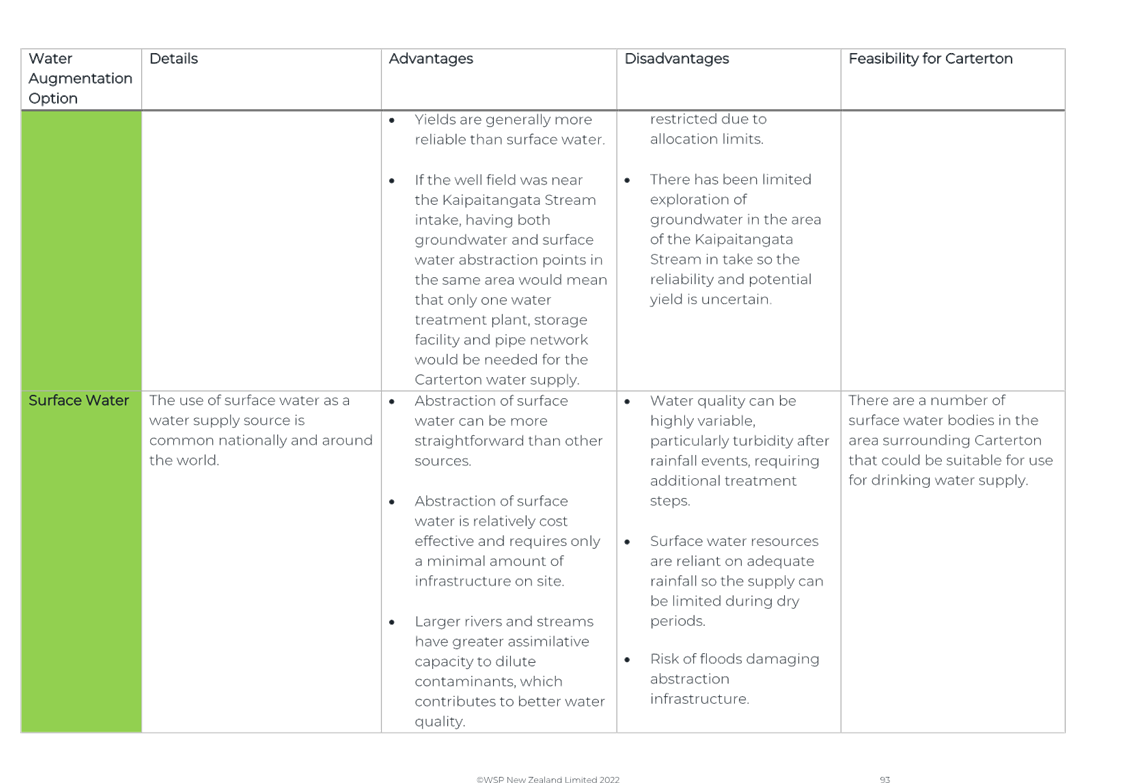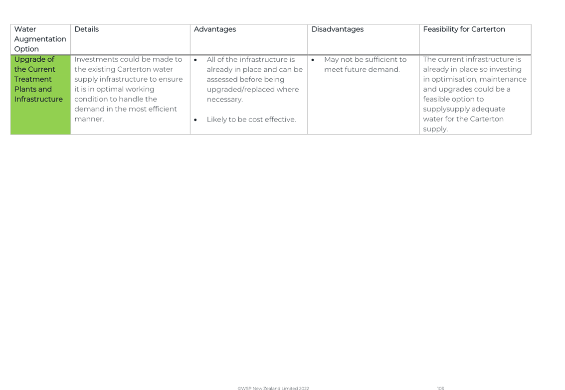 Again, due to the wet weather, we have been running off the Frederick St Supply more than we would normally be at this time of year. The operation of the Kaipaitatanga plant has been very intermittent, which has affected the completion date for the upgrade.