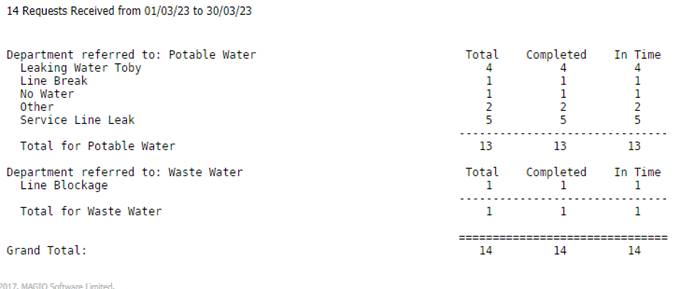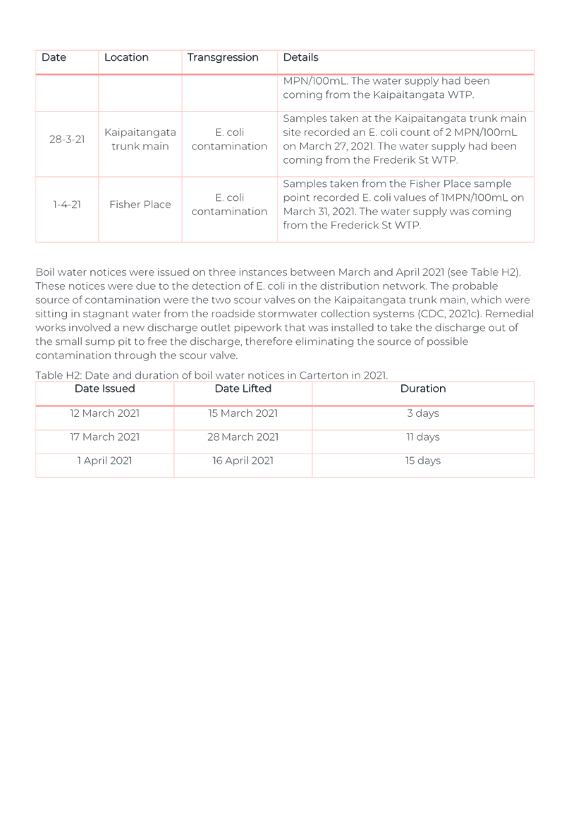 The team is continuing to undertake compliance with 2 x weekly sampling and weekly flushing of our dead ends and known spots in the network.