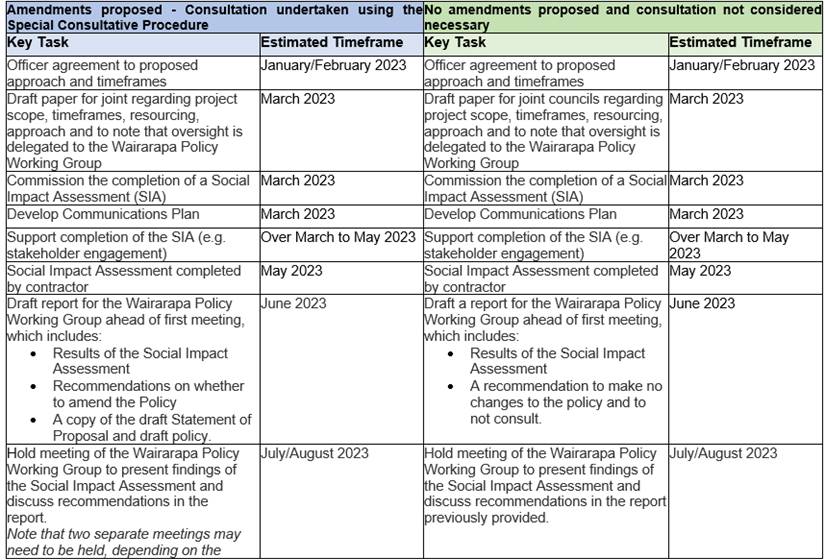 It is expected that the review, including community engagement, will take a minimum of nine months to complete. The Special Consultative Procedure (SCP) must be followed if amendments are proposed. The SCP includes a four-week consultation period followed by hearings and deliberations. If amendments are not proposed, the Councils can decide whether it is appropriate to consult with the community in accordance with our Significance and Engagement Policies.