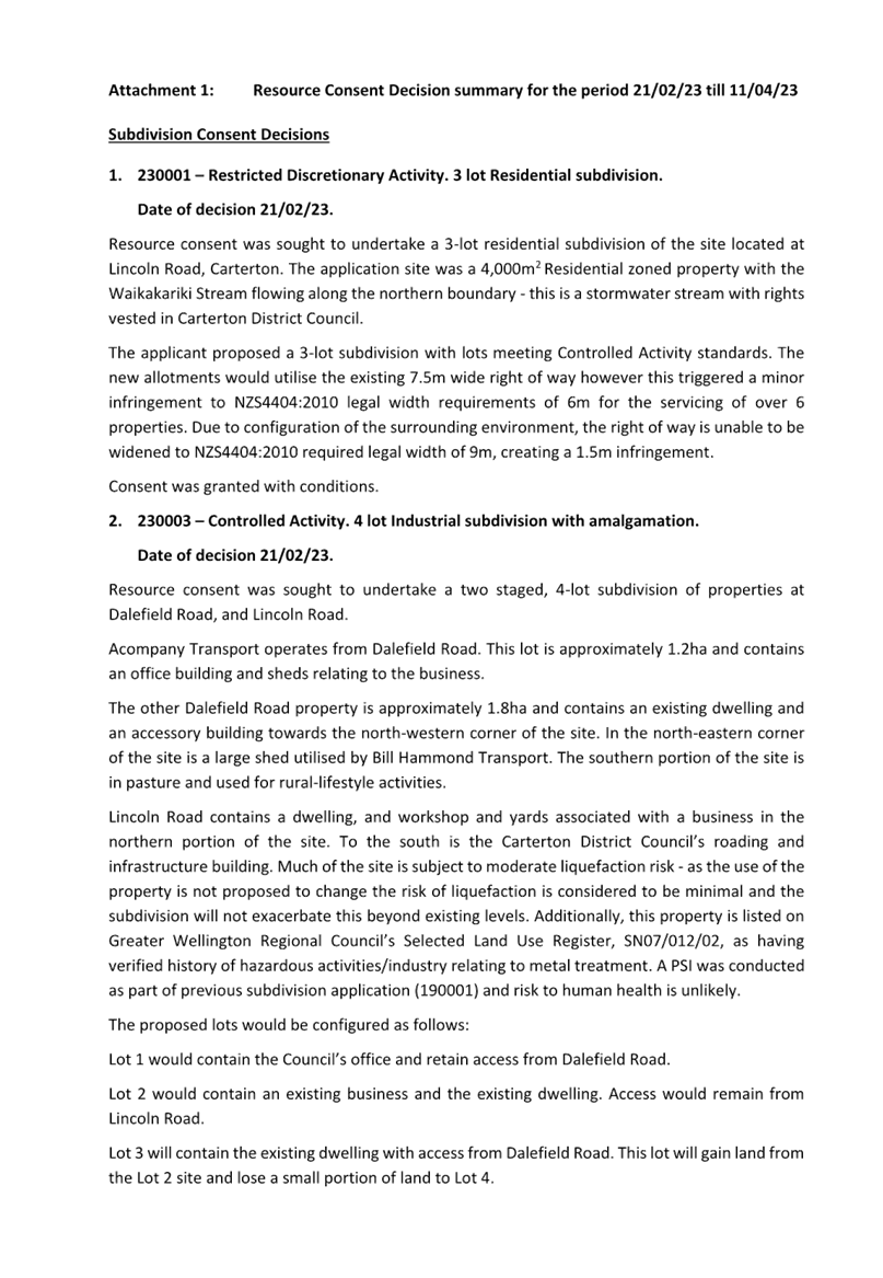 Attachments: 1. Resource Consent Update to 11 April 2023 ⇩
