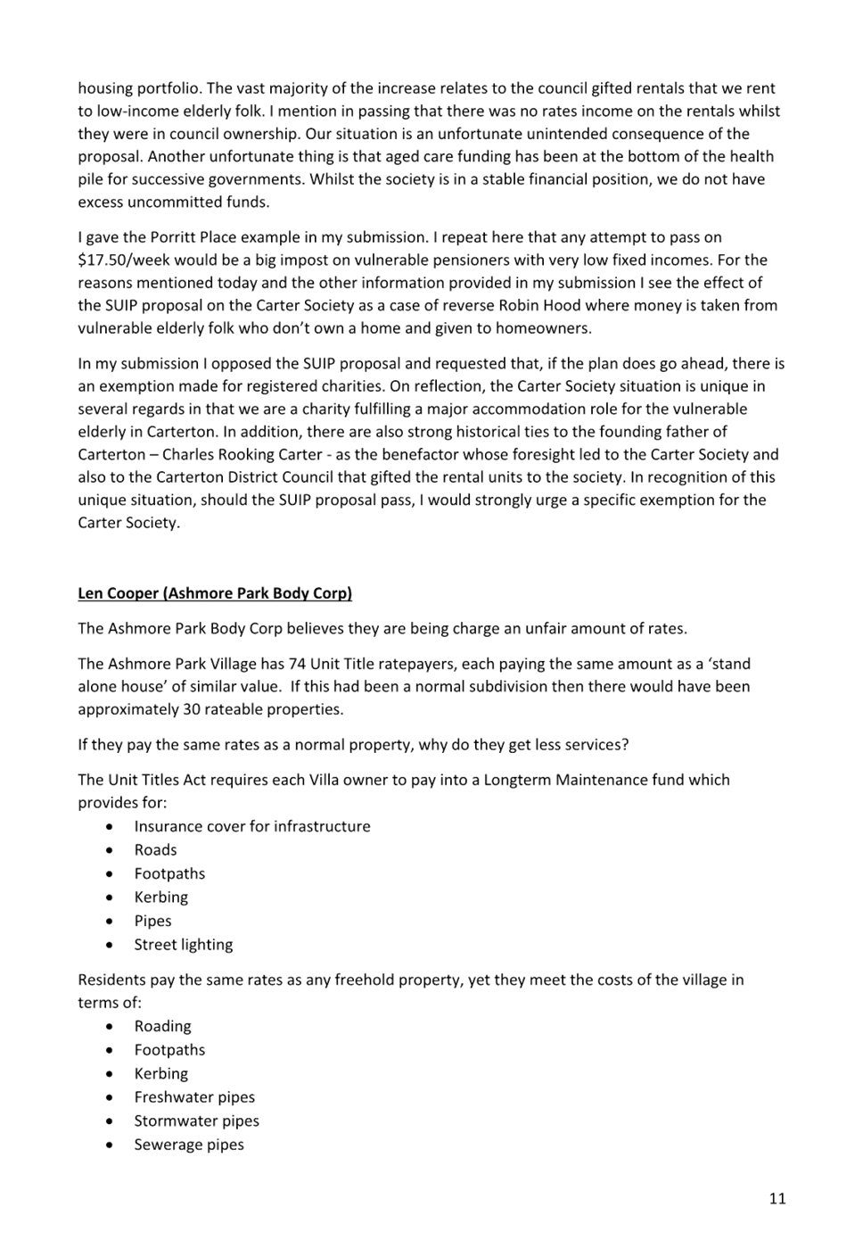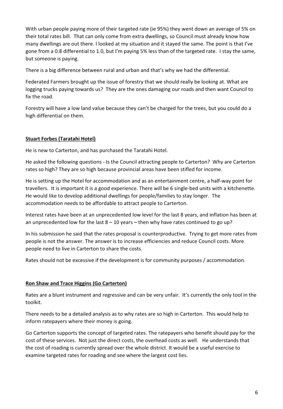 MOVED That the Council: 1. Receives the report. Cr S Cretney / Cr S Laurence CARRIED 2. Endorses priority 1 Reducing speed limits around Schools and Early Childhood Education Centres (ECEs). Cr B Deller / Cr S Gallon CARRIED 3. Endorses priority 2 Reducing speed limits around Marae. Cr R Cherry-Campbell / Cr S Cretney CARRIED 4. Endorses Priority 3 as per the revisions in this report. Cr G Ayling / Cr S Gallon CARRIED 5. Endorses Priority 4 Roads identified by the community. Cr B Deller / Cr S Laurence CARRIED 6. Endorses Priority 5 Reducing gravel roads to 80km/hr. Mayor R Mark / Cr S Cretney CARRIED 7. Approves the Carterton District Council Speed Management Plan with the amendments noted above. Deputy Mayor D Williams / Cr S Gallon CARRIED |