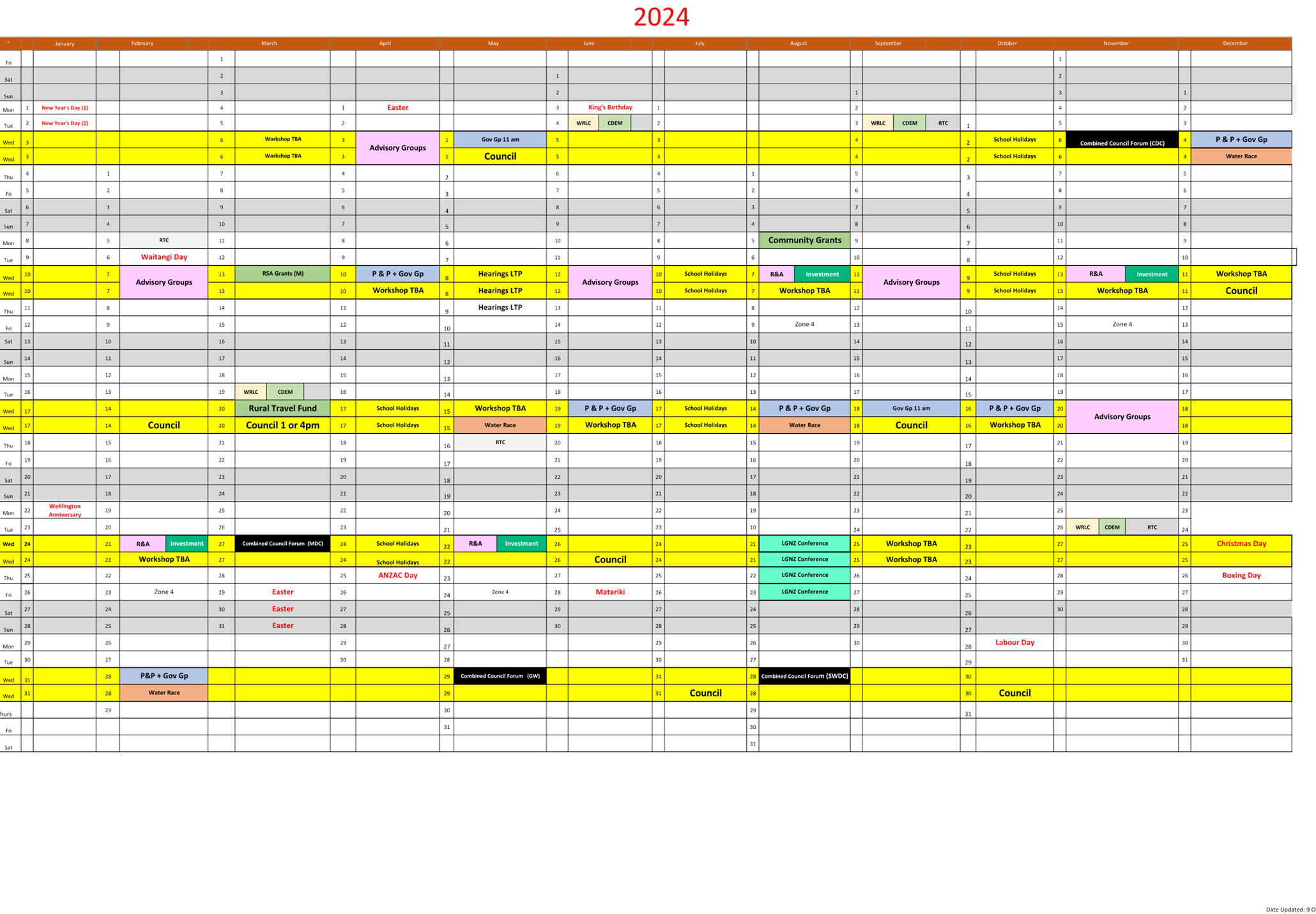 3. Notes that meeting dates and/or times may be changed by agreement with the Chair and the Chief Executive and will be advertised as required by the Act.