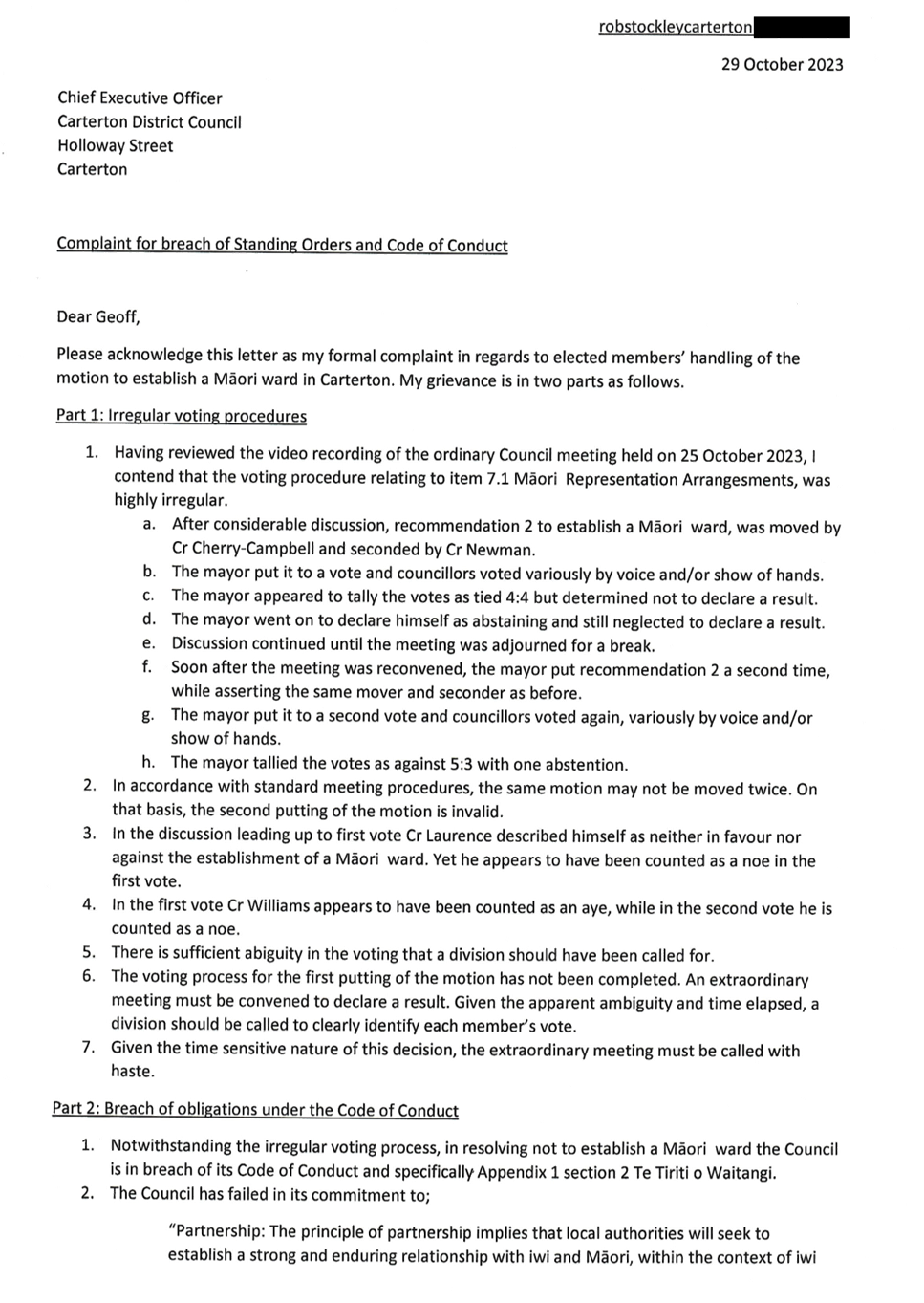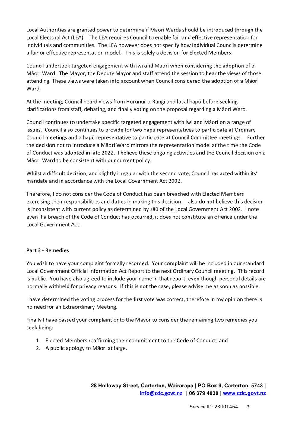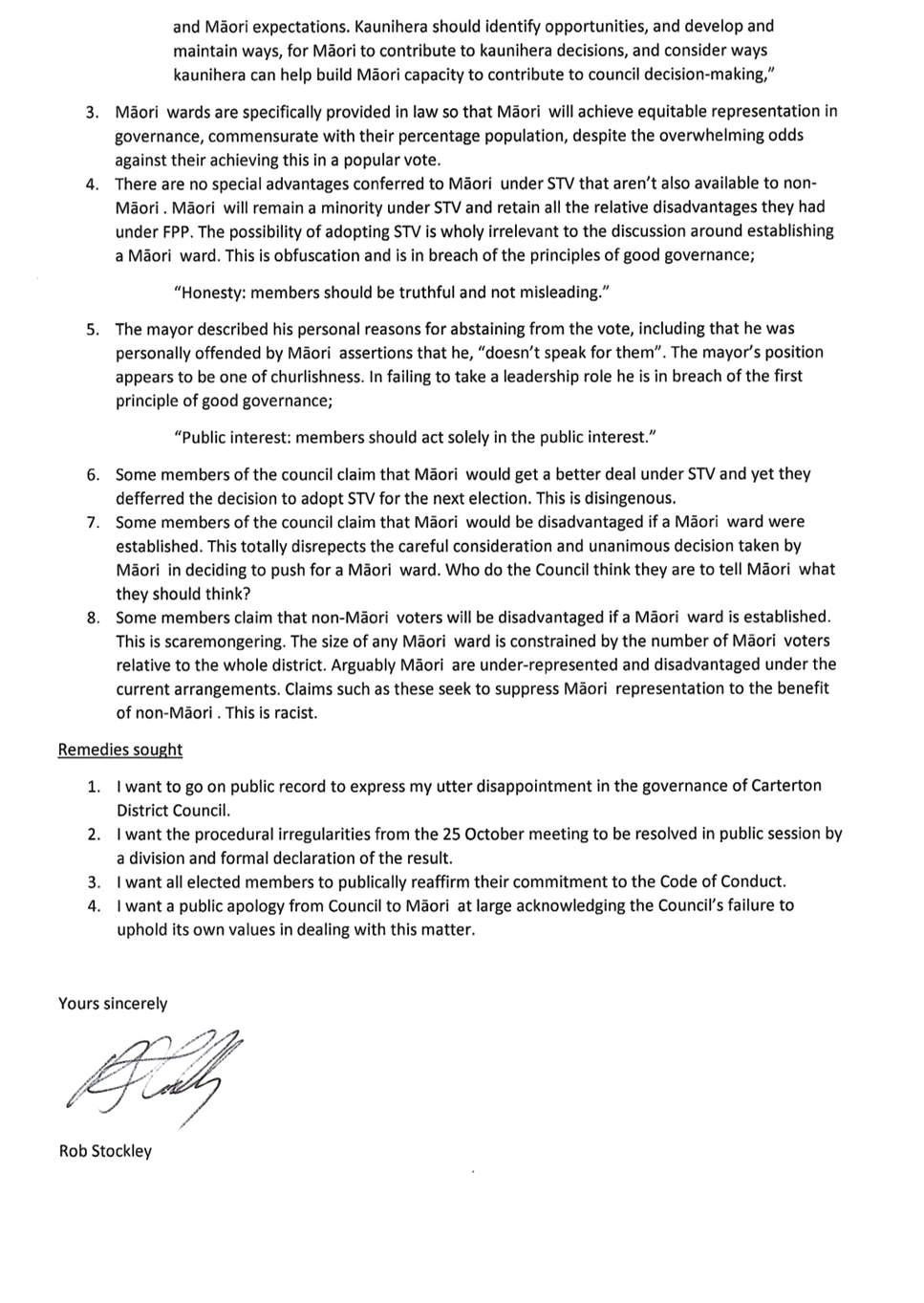 2. Joel Ngātuere (Ngāti Kahukuraawhitia) addressed the Council and outlined the benefits of introducing a Māori Ward.