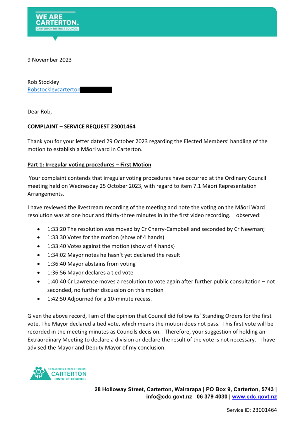 Second motion (determined to be procedurally invalid after the meeting) 3. Resolves to establish a Māori Ward to apply to the 2025 and 2028 local body elections.
