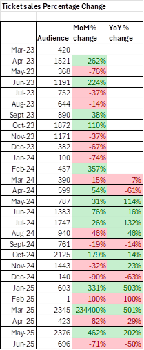 The table below shows total numbers of service requests received from January 2024 to July 2025.
