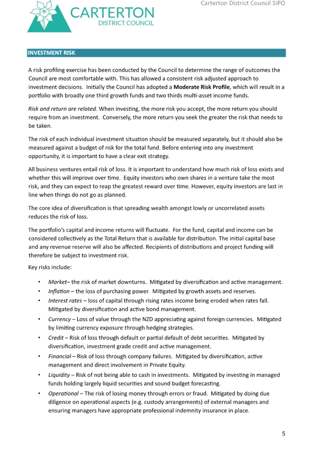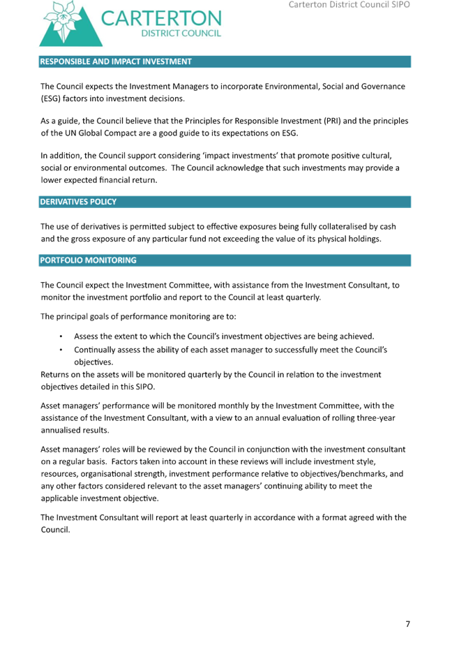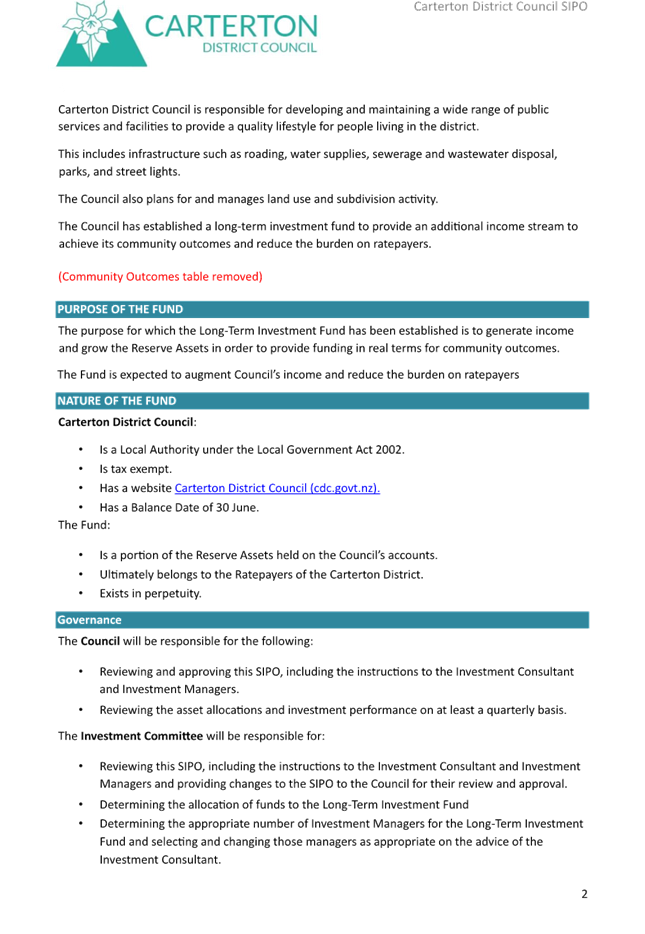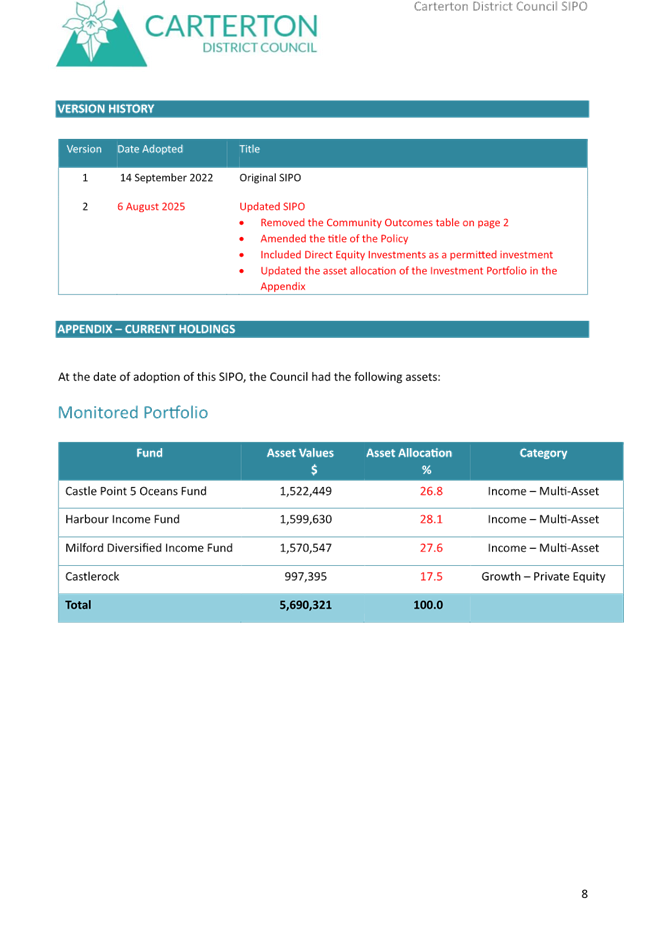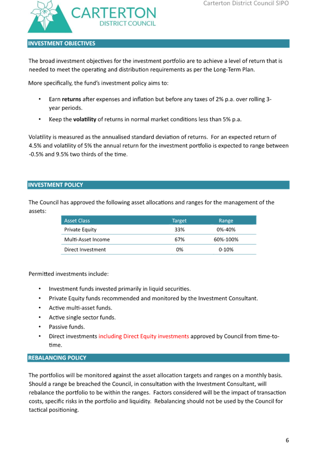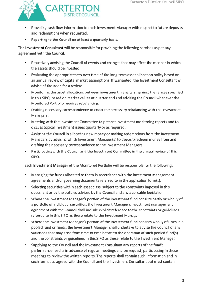 8.6 Statement of Investment Policy and Objectives (SIPO)