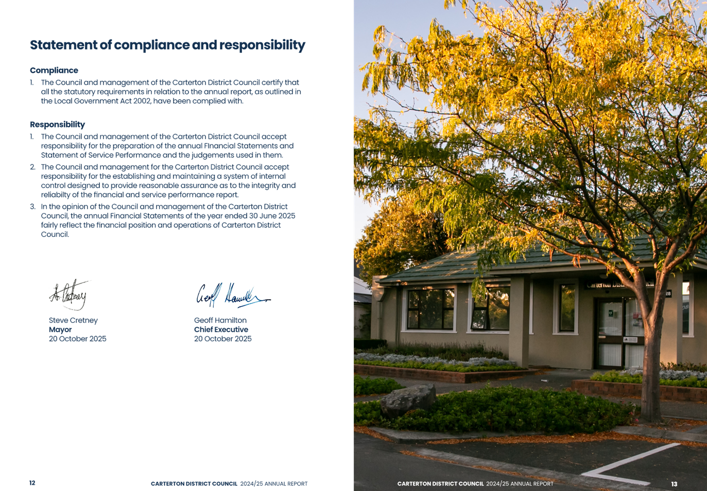 2. Adopts the Carterton District Council Annual Report for the year ended 30 June 2025.