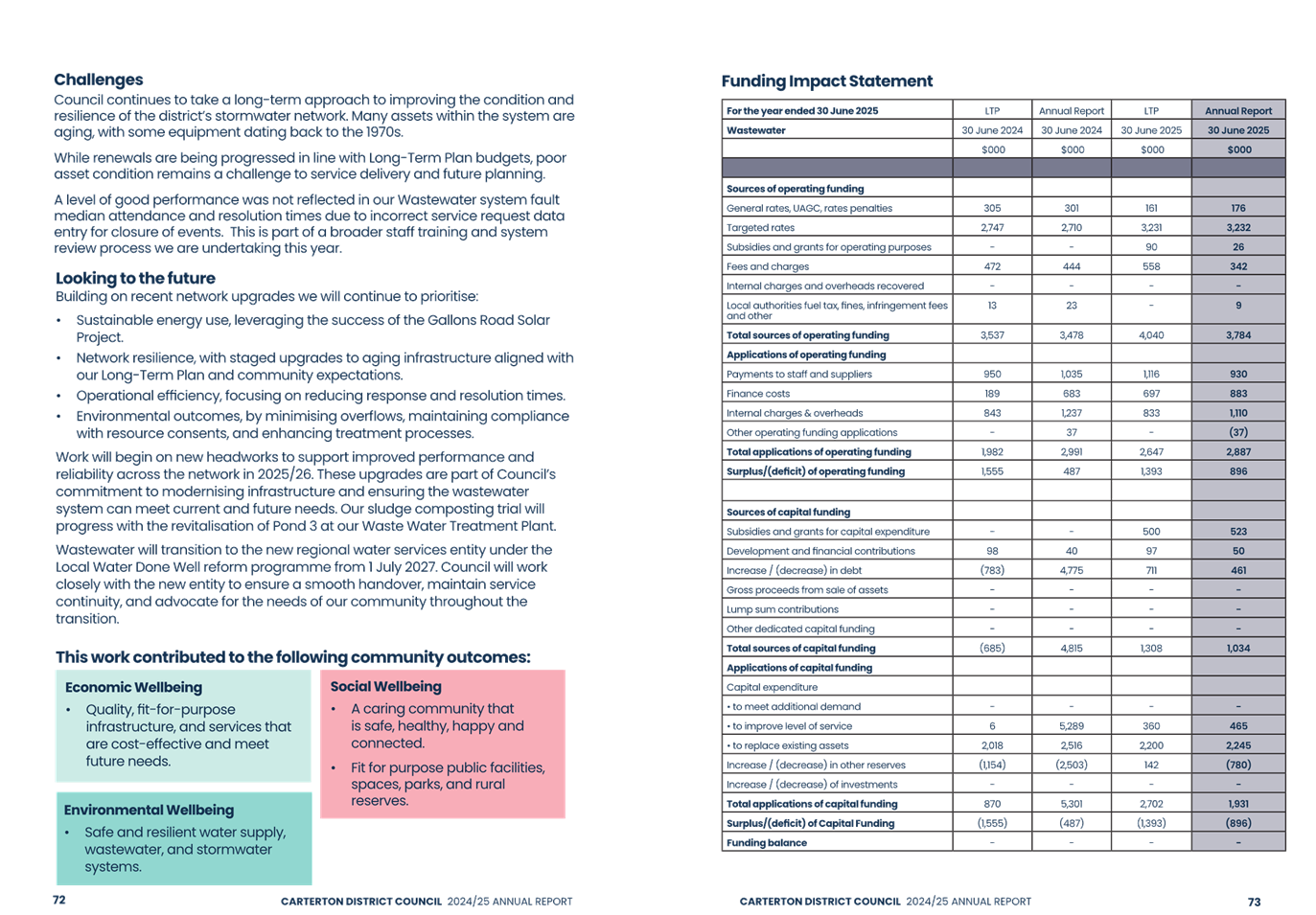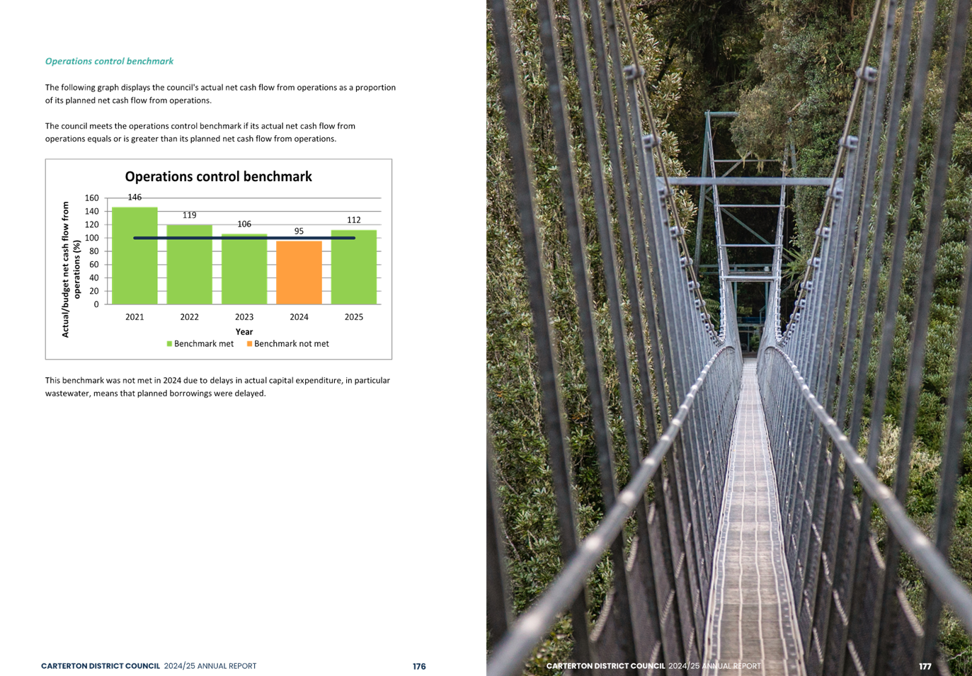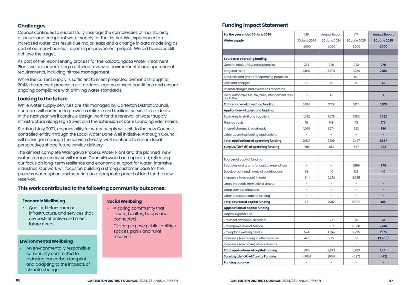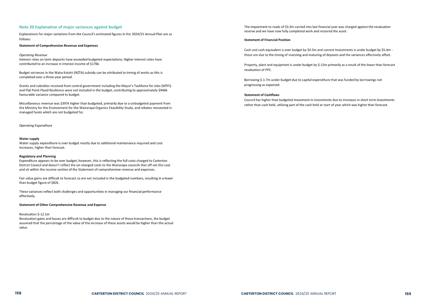 The audit opinion includes an emphasis of matter paragraph regarding the Council’s response to the Government’s Local Water Done Well reforms. An emphasis of matter is not a negative finding but draws attention to the financial uncertainty that exists as a result of the proposed formation of the Wairarapa-Tararua joint entity to deliver water, wastewater and stormwater services from 1 July 2027. The financial impact of this decision is unknown because details of the exact arrangements are still being considered. In addition, there is some uncertainty as the proposal is yet to be accepted by the Secretary for Local Government.