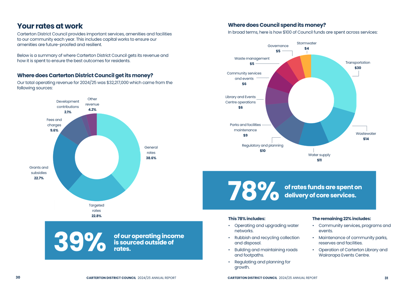 · ‘Your rates at work page’ reformatted to reflect Council’s $100 spend rather than ratepayers $100 spend to reflect external funding inclusion