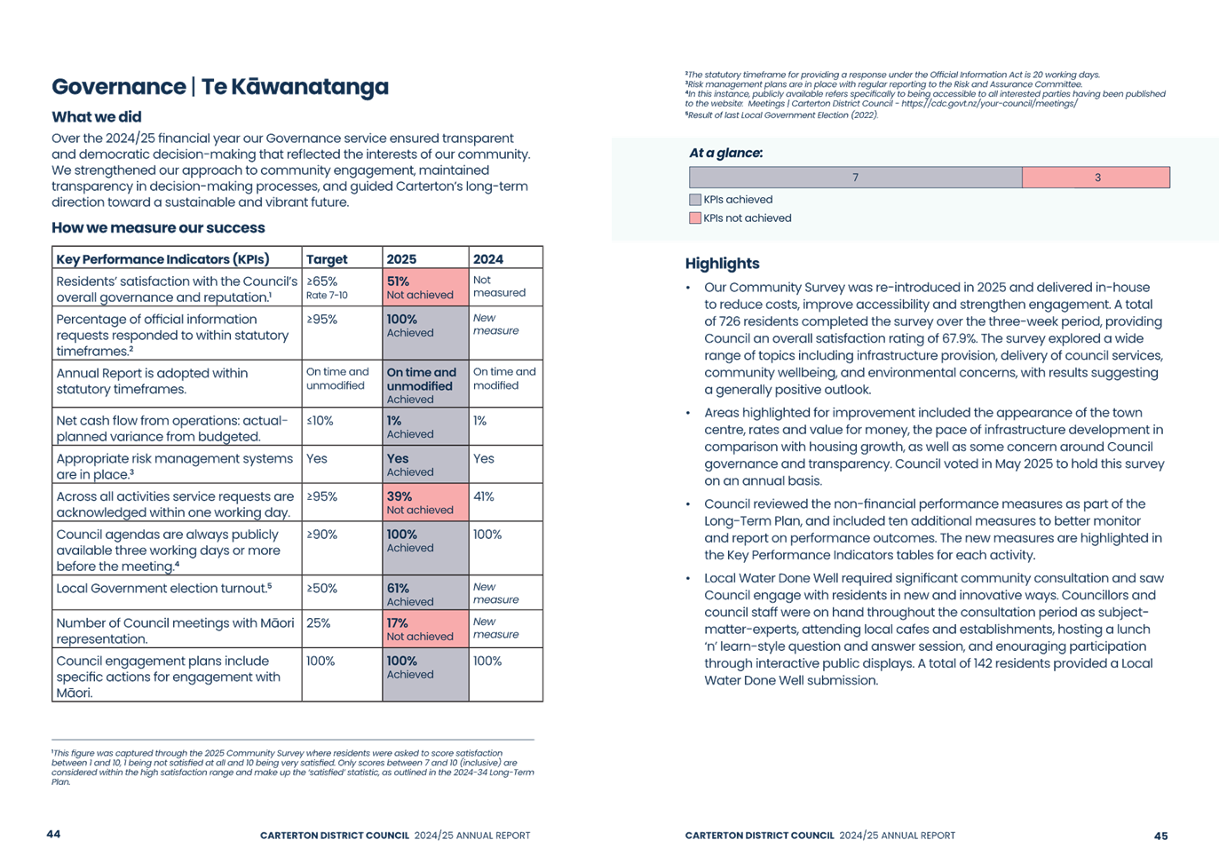 This year consideration and adoption have been affected by the Local Body Election held on 11 October 2025. The previous Council’s final meeting was held on 24 September, prior to the completion of the Annual Report, therefore it is incumbent on the new Council to consider adoption at this first Ordinary Meeting.